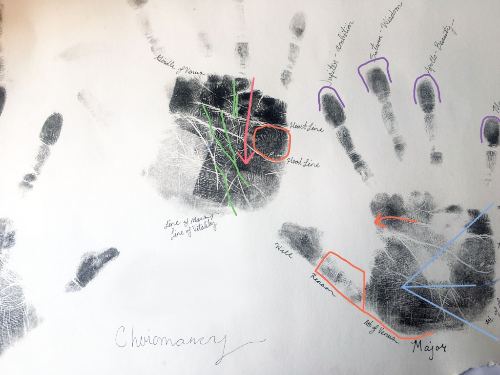 I went to college for Studio Art and I believe that was a key event that lead me to finding an interest Palmistry. An artist has to really train their eyes to see every little nuanced distinction in what they’re creating. This really set the stage for my interest in face reading, and later palm reading.