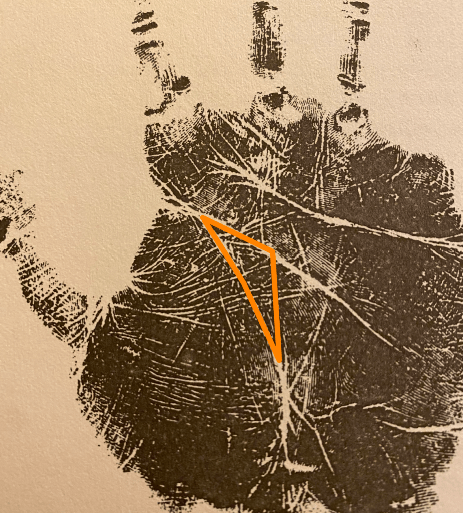 A true Mystic Triangle is very rare, and more often I see people have a Mystic Cross, both of which show a “mystical ability” innate in the person. A Mystic Triangle is supposed to show a stronger sense of ability than a Mystic Cross, but I don’t really agree with that myself. The Triangle is rare, so of course we see more Crosses.