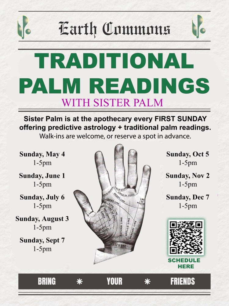 Join Sister Palm at Carpenter Hotel in Austin, TX, on select Fridays from 5-8 PM for insightful palm readings and predictive astrology consultations.